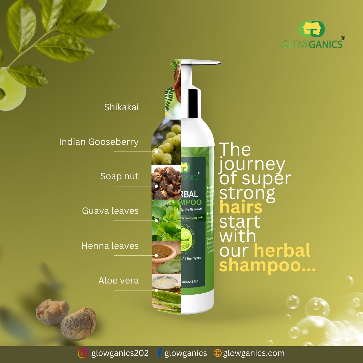 Glowganics herbal shampoo can prove to be significant for your hair. its natural essentials and herbs can treat your hair with perfection and bring back its smoothness and shine. So, get rid off all your hair problems, including hair fall, dull and damaged hair, frizz and dandruff. It restores vitality to damaged hair and makes them healthy.